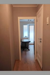 Обои под покраску, на кухне и в коридоре новый водоотталкивающий ламинат, установлены новые межкомнатные двери.