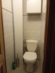 Во всех комнатах установлены стеклопакеты, малогабаритные батареи отопления. Пол - ламинат, на кухне - плитка, санузел отделан керамической плиткой, есть водогрей.