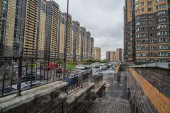 В доме — подземный паркинг, ресторан "Пхали-Хинкали", стоматология, два супермаркета, пункты Ozon и Wildberries.