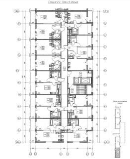 Квартира находится в 1 корпусе, секция 2.2, на 9 этаже.