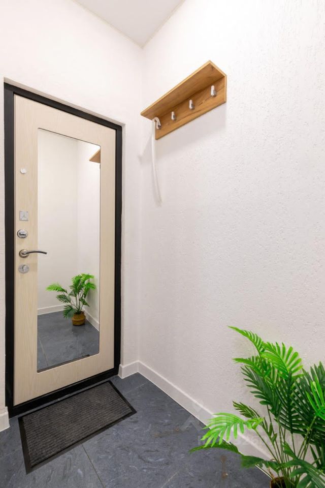 В квартире выполнен качественный евроремонт, что позволяет новому владельцу сразу заселиться и наслаждаться комфортом. Студия оборудована всем необходимым для жизни — современная мебель и техника гармонично вписываются в интерьер. Окна выходят во двор, поэтому в квартире всегда тихо и спокойно. Совмещенный санузел оформлен в современном стиле.