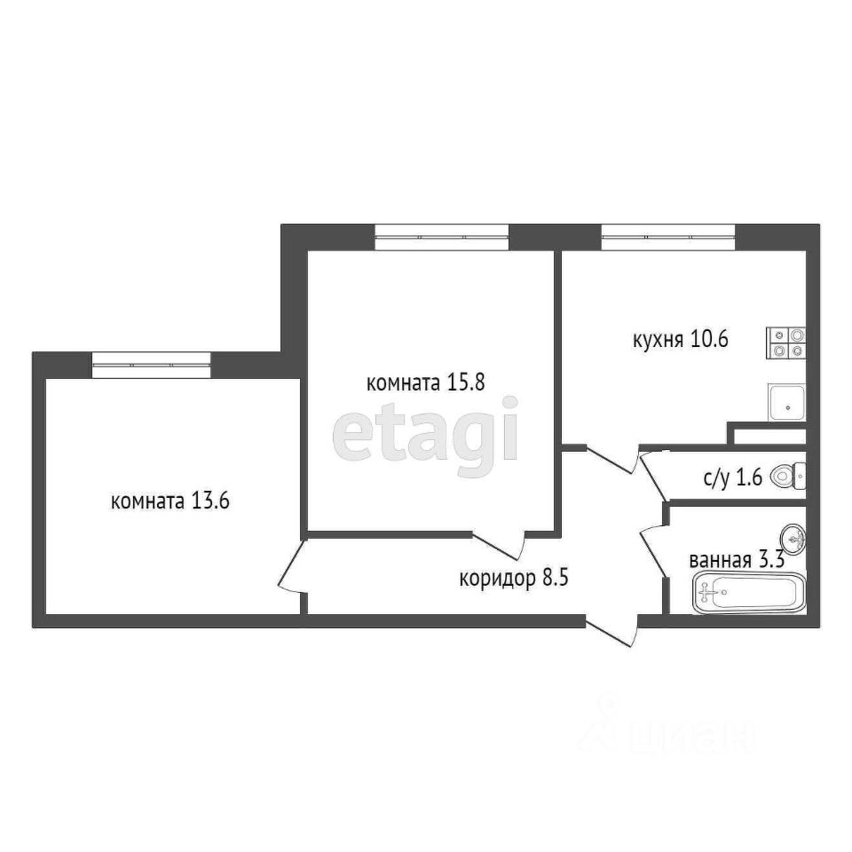 Эргономичная планировка: кухня квадратной формы 12 кв.м. и просторные изолированные комнаты 14 и 16 кв.м. и вместительный коридор.