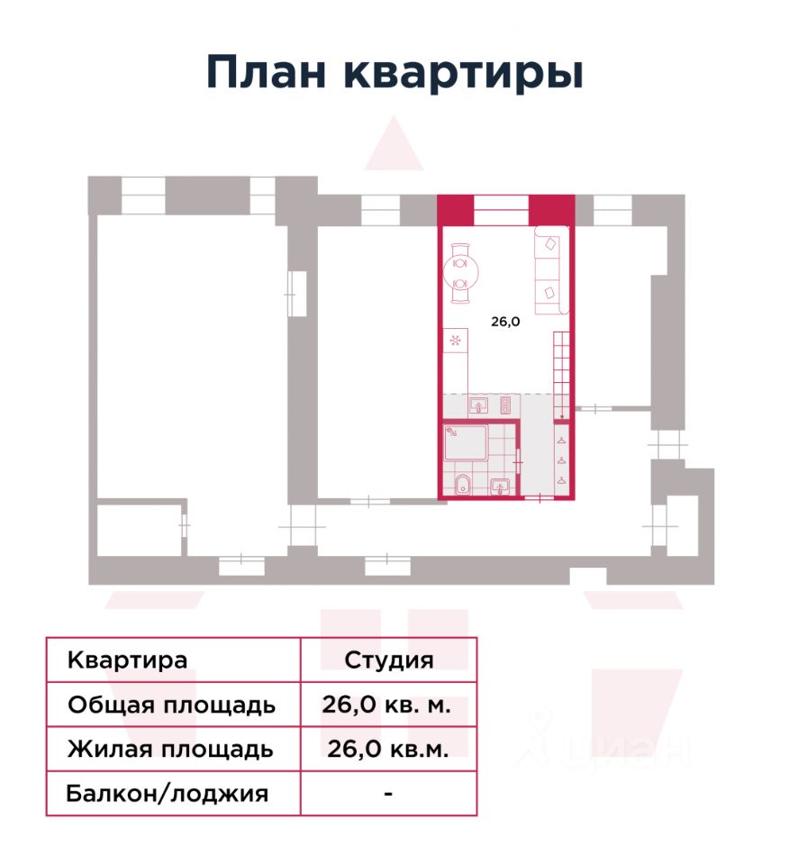 • Площадь: 26 м² + антресоль 8 м² — идеальное сочетание уюта и функциональности