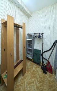 Комната с застекленным балконом, отдельное, с дверью, помещение гардеробной/кладовой со входом из большой, просторной прихожей, раздельный санузел, ванна, а не поддон или кабинка. Расстановка и комплектность мебели на сегодняшний момент позволяет предположить, что и новую обстановку при желании можно разместить достаточно удобно: помещение можно зонировать, туда вместится не одно спальное место, а кладовая/гардеробная вместит все, что не захочется оставить в открытом доступе. Кроме того, просторная прихожая позволяет вместить любой шкаф помимо или место вешалки, обувницу, любые полки и так далее.