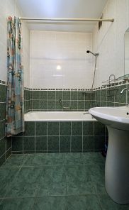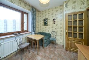 На полу в комнате отличный паркет. Остальные помещения - плитка. Настоящие деревянные двери, деревянные стеклопакеты с хорошей фурнитурой. В квартире тепло и не душно одновременно, светло за счет высокого этажа и вида из окна на перспективу.