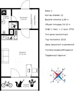 Квартира расположена на комфортном 4 этаже, окна балкона выходят во двор на юго-восток. Соседи примыкающих квартир - собственники, спокойные и приветливые люди.