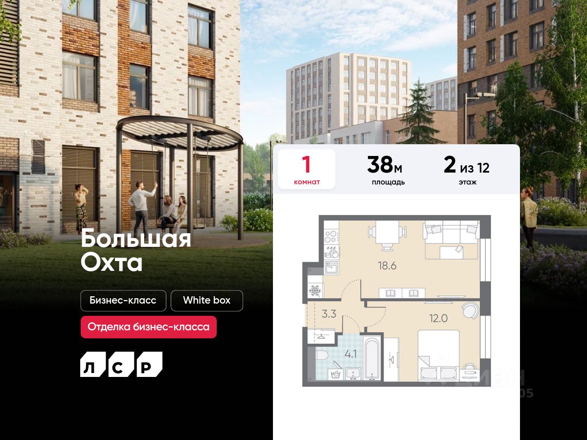 "ЛСР. Большая Охта" - проект бизнес-класса, в Красногвардейском районе между Якорной и Партизанской улицами, рядом с центром Петербурга. Престижный комплекс с удобной пешеходной и транспортной доступностью. Особенности квартиры высокие потолки и увеличенные окна.
