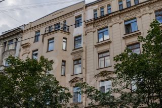 Квартира двухсторонняя площадью 143 кв.м. расположена на 5-этаже 6-этажного здания Доходного дома А. Л. и Л. А. Гутманов перестроено в 1913г на месте здания усадьбы 1822г. в которой часто гостил поэт Михаил Лермонтов.
