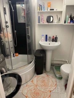-Ванная полностью оборудована для проживания (кабинка, стиральная машина, полки для удобства хранения предметов гигиены).