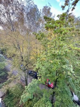 Дом расположен в зеленом районе, окружённом многочисленными деревьями, создающими атмосферу парка. Напротив дома находится 477 школа., в пешей доступности лицей 408. Микрорайон благоустроен: имеются детские площадки, зоны для отдыха со скамейками, прогулочные территории. В пешей доступности находятся Александровский и Екатерининский парки. В районе развита вся необходимая инфраструктура: