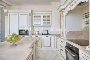 Квартира: 3 спальни с двумя сан.узлами , постирочной зоной, душевой и джакузи. Просторная входная группа с объемной и светлой обеденной зоной. Кухня с островом так же сделаны на заказ и привезены из Италии.