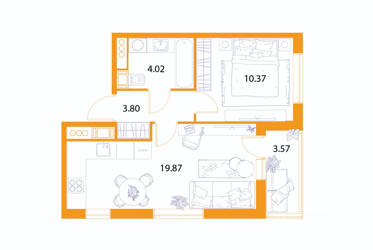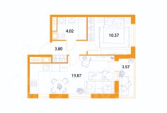 • Общая площадь квартиры - 37.06 м²
