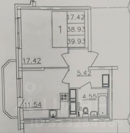 В продаже просторная 1- комнатная квартира 38,7 метра.