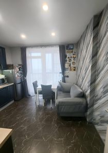 Квартира светлая, с панорамными окнами. Большая застеклённая лоджия;