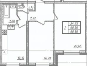 Огромная гостиная 20,65 м² — ваш личный кинозал, спортивная зона и место для приема гостей. Места хватит на всё!
