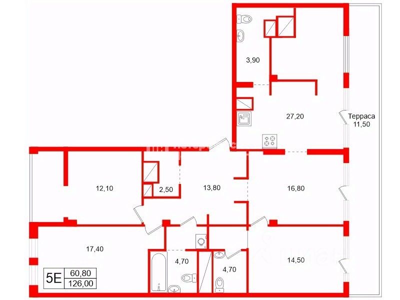 Комнаты 12.1 + 17.4 +14.5 мастер-спальня + 16.8