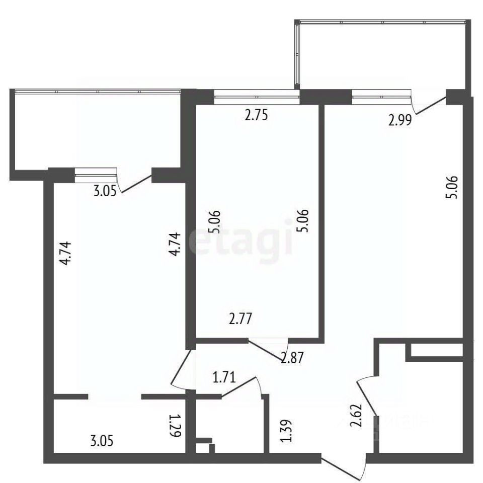 Площадь квартиры: 61,3 м² + 2 балкона.
