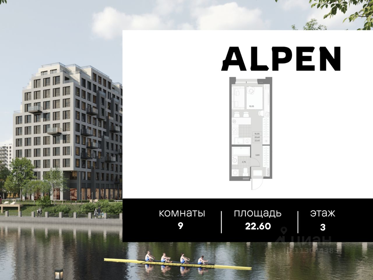 В центре Петербурга на берегу реки Охты представлена студия на 3 этаже общей площадью 22.60 кв.м.