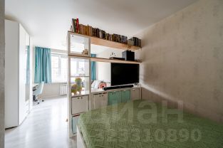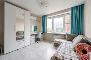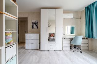 Комната зонирована на две части, что позволяет распланировать пространство под спальную зону и зону досуга.