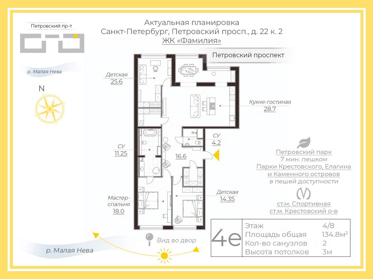 Представляем вашему вниманию уникальное предложение на рынке недвижимости — просторную четырехкомнатную квартиру евро формата в жилом комплексе премиум-класса FAMILIA, который по праву считается жемчужиной Петровского острова.