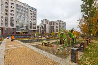 Дворы безопасны для прогулок с детьми, без машин (для них отведены специальные места, а также подземный паркинг со спуском в него на лифте). Обустроена своя пешеходная набережная, зоны отдыха с потрясающими видами на реку, Елагин остров, Финский залив. Современные детские площадки. На территории тихо и безопасно. В окружении расположены четыре любимых горожанами парка, несколько станций метро.