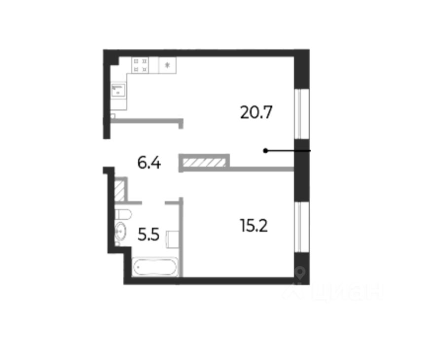 Квартира без ремонта, что дает вам возможность воплотить свои дизайнерские идеи и создать интерьер мечты. Жилая площадь составляет 15 кв.м, а просторная кухня в 20 кв.м станет отличным местом для семейных ужинов и встреч с друзьями. В квартире есть совмещенный санузел, который можно обустроить по своему вкусу.