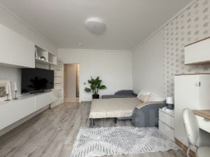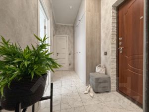 2. Выполнен качественный ремонт. На полу ламинат, обои, плитка в с/у. Все межкомнатные двери новые может также указать. Заменена входная дверь. Радиаторы с терморегуляторами.