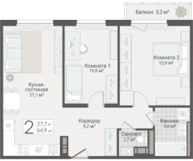 Продаётся 2-комнатная квартира в сданном доме (Корпус 1 (ул. Руднева, 15)), срок сдачи: IV-кв. 2024, общей площадью 64.9 кв.м., на 3 этаже. Жилой комплекс "Руднева 15" расположен в Выборгском районе Санкт-Петербурга, недалеко от трёх станций метро "Проспект Просвещения", "Озерки" и "Гражданский проспект".