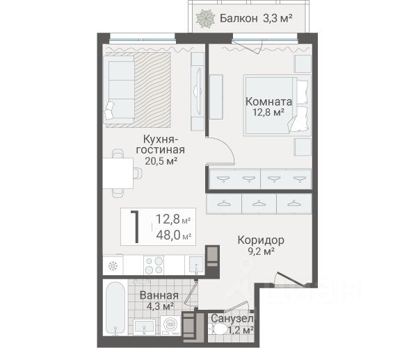 В комплексе представлены квартиры различных планировок: от студий площадью 30 м до трёхкомнатных квартир 100 м. Все квартиры отличаются продуманной планировкой, отвечающей требованиям современной семьи. В каждом варианте предусмотрены просторные кухни-гостиные площадью от 15 м до 31 м. Некоторые двухкомнатные квартиры оборудованы окнами в ванных комнатах, а в трёхкомнатных квартирах обязательно предусмотрены два санузла.