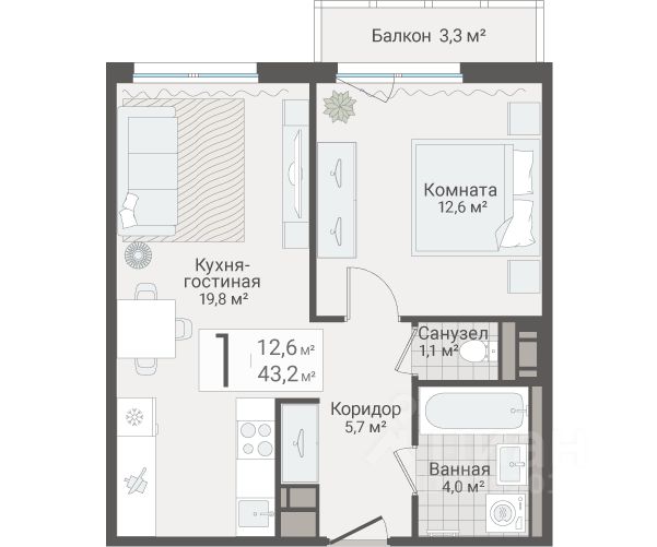 Продаётся 1-комнатная квартира в сданном доме (Корпус 1 (ул. Руднева, 15)), срок сдачи: IV-кв. 2024, общей площадью 43.2 кв.м., на 12 этаже. Жилой комплекс "Руднева 15" расположен в Выборгском районе Санкт-Петербурга, недалеко от трёх станций метро "Проспект Просвещения", "Озерки" и "Гражданский проспект".