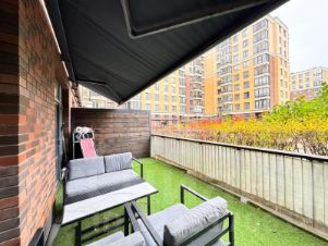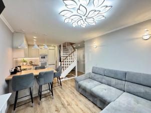 Двухуровневая квартира с полной меблировкой и отделкой представляет собой продуманное пространство для комфортной жизни. На первом уровне расположена светлая гостиная, объединенная с кухней, с прямым выходом на собственную террасу, что создает эффект расширения жилой площади и обеспечивает приватный доступ к озелененной территории тихого двора. Этот же уровень включает спальню, санузел и функциональную прихожую. Второй уровень отведен под приватную зону с двумя изолированными спальнями, санузлом, просторной гардеробной и прачечной, что позволяет оптимально организовать быт. Объект расположен в современном и хорошо спланированном районе с развитой инфраструктурой: в шаговой доступности находятся аптеки, кафе, остановки общественного транспорта, а также детские сады и школы. Район характеризуется благоустроенной территорией с освещенными бульварами и спокойной атмосферой. Ключевыми преимуществами являются минимальное количество соседей, ощущение загородного уединения при сохранении всех городских удобств и юридическая чистота сделки — два взрослых собственника, материнский капитал не использовался.