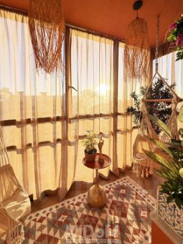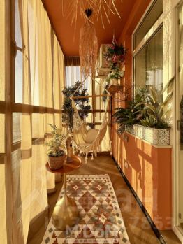 На просторном балконе 4,2 м² с теплым полом устроена комфортная зона отдыха с двумя гамаками и зоной хранения. Благодаря панорамному остеклению и окнам на северо-восток, в квартире много естественного света.