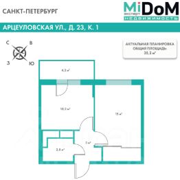 Квартира общей площадью 35,2 м²: 31 м² по ЕГРН + просторный застекленный балкон 4,2 м². Наш квартирой только тех этаж, без соседей.