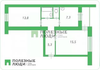 Площадь: 48.9 кв.м. — комфортно для семьи.