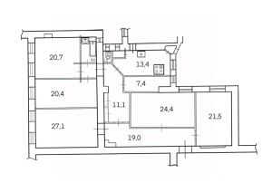 Кухня площадью 13.4 кв.м., просторные комнаты более 20 кв.м. каждая.