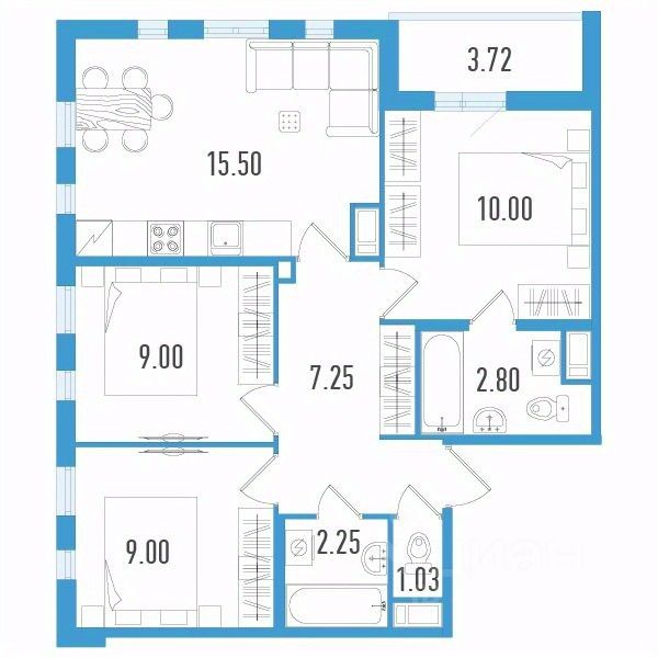 Продаётся 3-комнатная квартира в сданном доме (Старорусский пр-т, 3к2 (Дом 1)), срок сдачи: II-кв. 2025, общей площадью 67.2 кв.м., на 12 этаже.