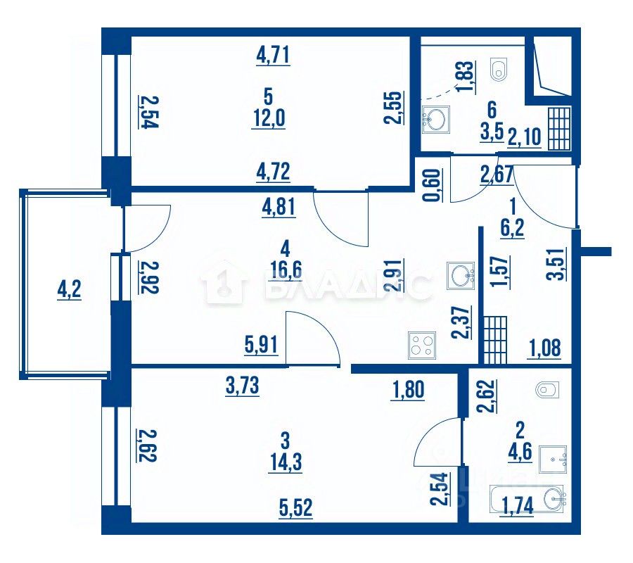 Квартира без отделки, что даёт возможность воплотить в жизнь самые смелые дизайнерские идеи. Наличие двух санузлов (раздельного и совмещённого) делает квартиру ещё более удобной для проживания. Также есть лоджия — отличное место для отдыха.