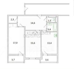 Две раздельные комнаты 17 кв.м. и 16.6 кв.м., кухня-гостиная 13, 4 кв.м., просторный холл 14.6 кв.м. В спальне глубокий встроенный шкаф. В коридоре просторная гардеробная 2, 3 кв.м.