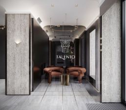 Двухсекционный клубный дом премиум-класса с панорамными окнами высотой 2,5 метра, террасами, пентхаусами, персональным сервисом и интегрированными технологиями "Умный дом" расположен в шаге от Московских Триумфальных ворот на Заставской улице, 30. При разработке проекта архитектурная мастерская Юсупова гармонично вписала жилой дом в окружающую застройку, использовав краснокирпичную облицовку и элементы декора в стиле модерн. В оформлении проекта принимает участие и знаменитый художник с мировым именем Михаил Шемякин. Маскароны из его коллекции "Метафизические головы" будут украшать главный фасад Talento. А интерьеры дома разработаны по проекту Олега Клодта потомка петербургского скульптора времен царствования Николая I. Небольшая отдаленность от географического центра Петербурга компенсируется развитым окружением, зеленью, прекрасной транспортной доступностью и богатым историческим наследием. Рядом с Talento сохранилось большое количество купеческих доходных домов, церквей и монастырей, образцов императорской промышленной архитектуры и знаменитого сталинского ампира.