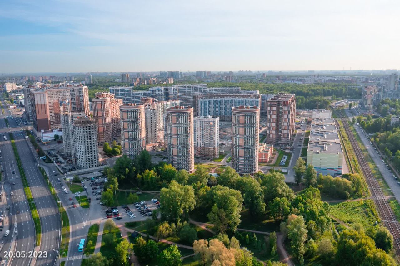 Высотность домов снижается по мере движения от периметра к центру: квартал устроен так, чтобы закрыть внутреннее пространство от шума города и при этом впустить максимум света в окна домов и на площадки для отдыха. Дополнительной защитой от шума служит линия из шести многоэтажных паркингов, выстроенных вдоль железной дороги и ул. Матроса Железняка.