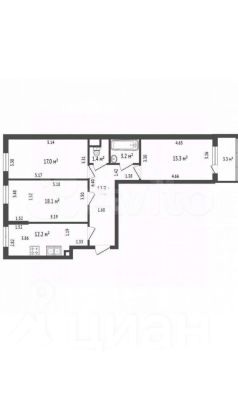 - Комнаты: 18,1 / 17.0 / 15,3 м2