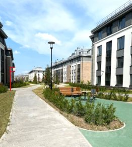 Наличие подземного паркинга, спортивных и детских площадок, уютных пространств для отдыха, скверов , ландшафтного  дизайна территории ЖК всё это создаёт удобство проживания и  комфорт жителей жилого комплекса!!!