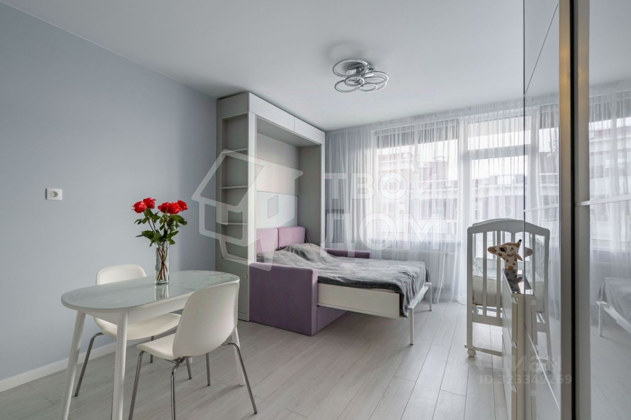 - Оборудованная кухня с встроенной техникой (духовой шкаф и варочная поверхность), шкаф-кровать (трансформер), в санузле застекленная душевая кабина на подиуме, гигиенический душ