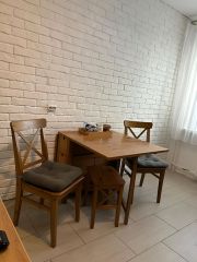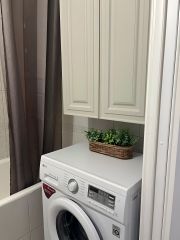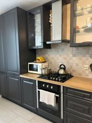 Кухонный гарнитур, идеально выполненный под параметры площади, сантехника и новая мебель в ванной комнате - остаётся новым владельцам.