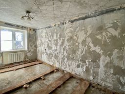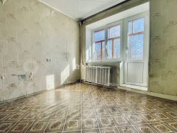 Квартира требует ремонта и он уже начат - в одной из комнат снят пол. Старые рамы везде заменены на стеклопакеты.