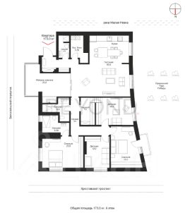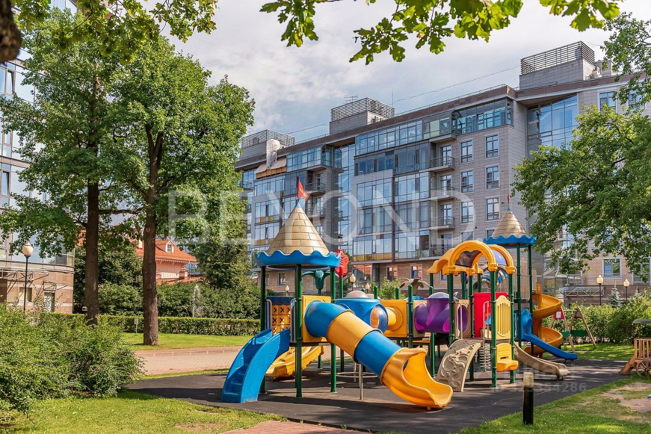 Предлагается к продаже трехсторонняя квартира площадью 173 кв. м с идеальной планировкой и панорамными видами на парковую зону, современные архитектурные доминанты и Малую Невку.