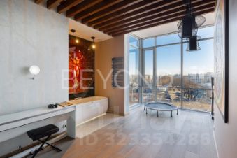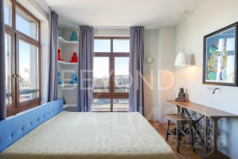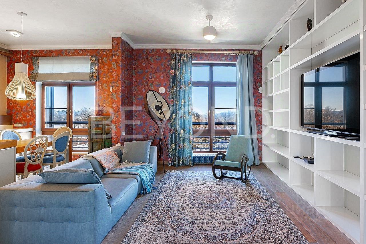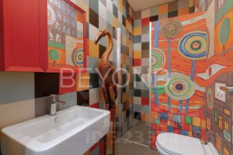 Планировочные и интерьерные решения привносят гармонию, покой и порядок. Гостиная 50 кв. м, объединенная с кухней, зонирована на пространство для комфортного семейного отдыха, обеденную зону и зону приготовления (техника AEG, Liebherr). Приватная часть представлена блоком с четырьмя спальнями, двумя ванными комнатами и гардеробной. При входе в квартиру - холл со стеклянной дверью с контролем доступа, просторный хоз. блок и гостевой санузел с интерьером по мотивам живописи австрийского художника Хундертвассера.