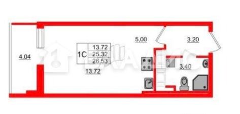 В продаже студия в одном из самых перспективных районов Санкт-Петербурга. Квартира расположена на 13 этаже 21-этажного монолитного дома ЖK "Чистое Небо", построенного Setl Group в 2018 году, по адресу Комендантский проспект, дом 66к1.
