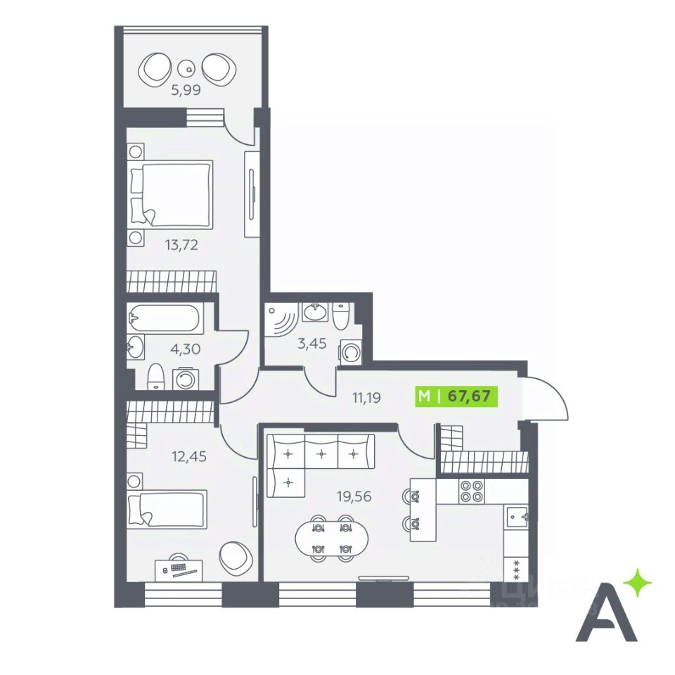 Продаётся 3-комнатная квартира в строящемся доме (Дом 1), срок сдачи: IV-кв. 2027, общей площадью 67.67 кв.м., на 2 этаже. Новый жилой комплекс "Аквилон RekaPark" от застройщика "Аквилон" расположен по адресу: Ленинградская область, Всеволожский район, Заневское городское поселение, деревня Новосергиевка