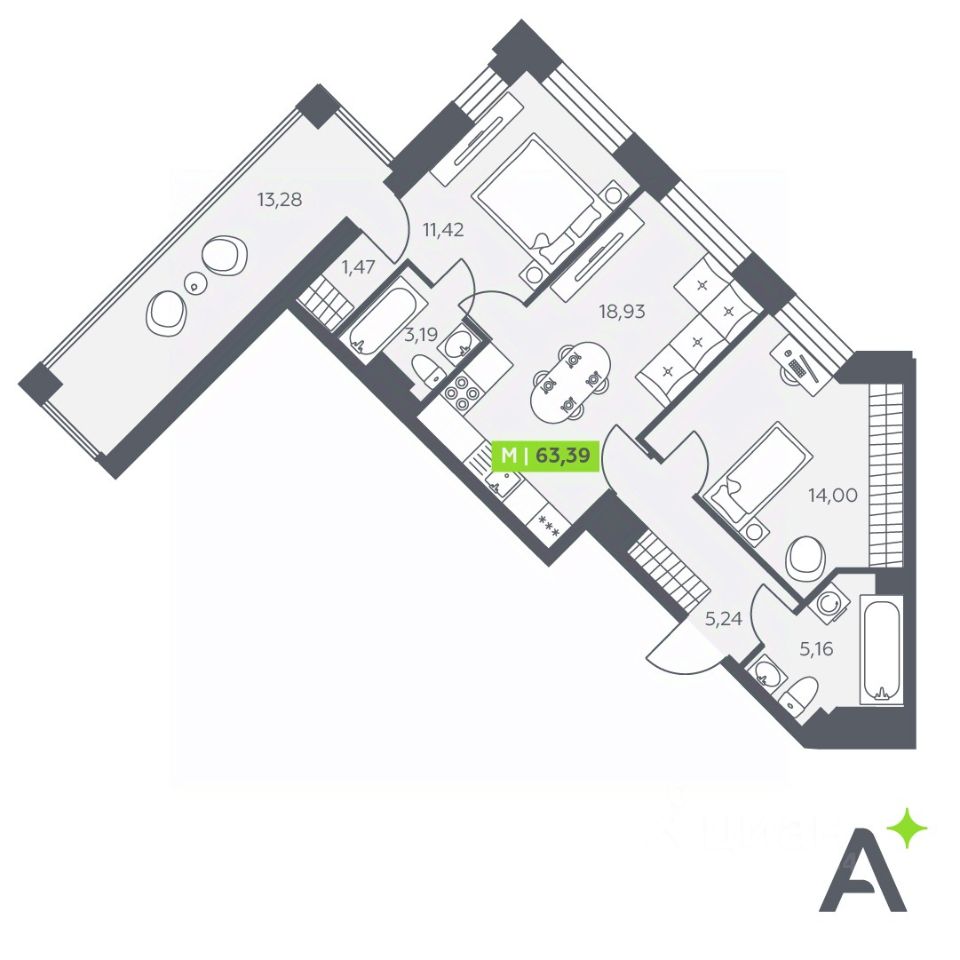 Продаётся 3-комнатная квартира в строящемся доме (Дом 1), срок сдачи: IV-кв. 2027, общей площадью 63.39 кв.м., на 9 этаже. Новый жилой комплекс "Аквилон RekaPark" от застройщика "Аквилон" расположен по адресу: Ленинградская область, Всеволожский район, Заневское городское поселение, деревня Новосергиевка